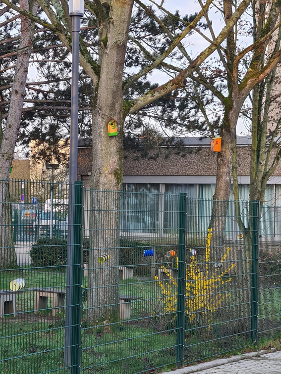 Groß und Klein schmücken den Schulgarten mit neuen Futterhäusern für die Vögel