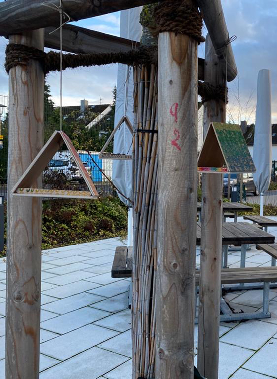 Unter anderem haben die Kinder in der kalten Jahreszeit Futterhäuser für Vögel gebaut. Es musste viel Material besorgt werden, um die Vogelhäuser zu bauen. Die Kinder waren mit großem Eifer dabei berichtet Bianca. Es wurde überlegt, wie die Häuser aussehen sollen und dann gemeinsam zur Tat geschritten. Als die Futterhäuser fertig waren und befüllt mit Bio-Sonnenblumenkernen (Eigenanbau im Schulgarten) wurden, haben sie diese gemeinsam im Schulgarten angebracht.